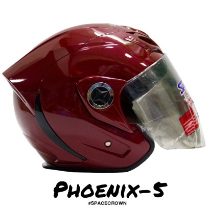 Phoenix-5 หมวกกันน็อคเต็มใบ เปิดหน้า สเปซคราวน์ รุ่นดั้งเดิมของซีรี่ย์ฟีนิกซ์ เป็นหมวกกันน็อคพื้นสีเรียบ คงไว้กับความเรียบหรู และลายนกฟีนิกซ์ แน่นอนว่ารุ่นนี้เป็นที่มาของความฮิตว่าใส่สบาย ทรงสวยเหมือนหมวกกันน็อคราคาแพง
